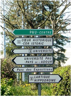 En Béarn, on m’a dit que lorsqu’un de ses amis avait demandé à M. Bayrou, alors président du Conseil général, de doubler les panneaux d’agglomération par le nom ancien (sous-entendu, écrit à la mode occitane), il lui aurait répondu : « Mais la quasi totalité des noms de communes béarnaises ont en “français” leur nom béarnais de toujours. » Et il avait raison, car ce sont les Béarnais instruits qui les ont choisis jadis, l’administration a suivi. M. Merle fait le même constat : « la réalité lexicale et articulatoire ne subsiste plus, paradoxalement, que dans le nom français ».